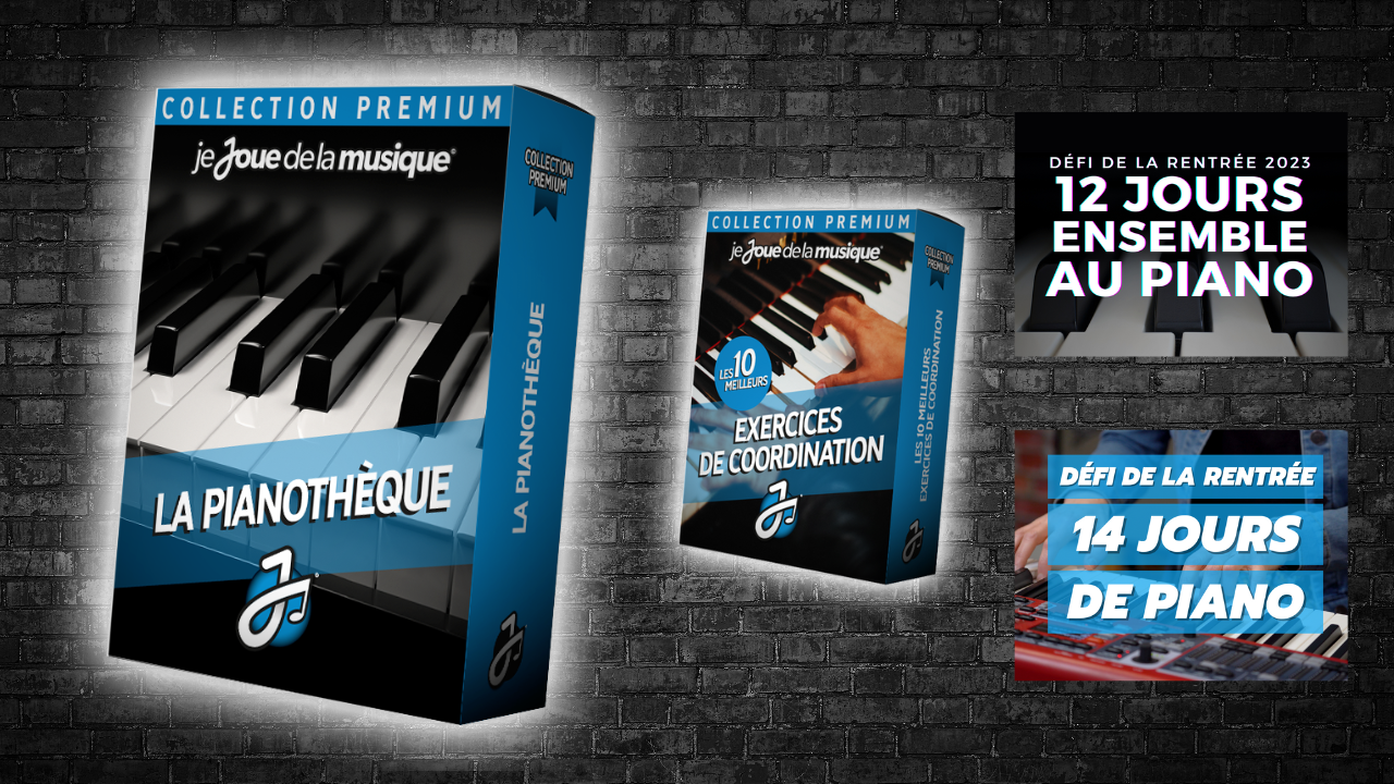 Avec le forfait DELUXE, en plus d'obtenir le cours «La Pianothèque», vous avez aussi accès immédiat au très populaire cours «10 Exercices de coordination» et à deux défis qui sauront "booster" votre motivation.
